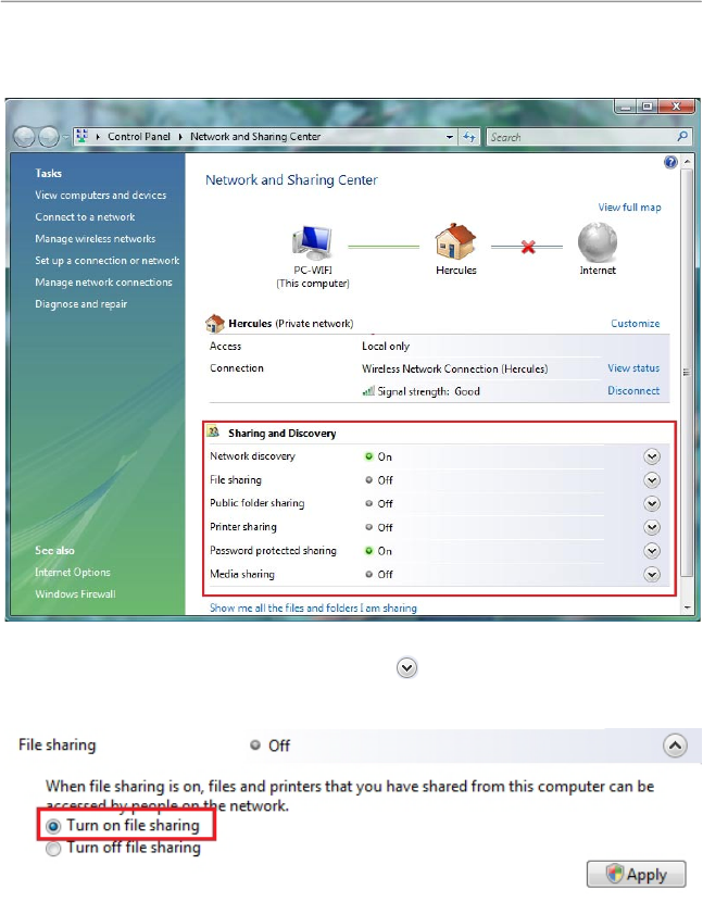 - Select the Turn on file sharing radio button.