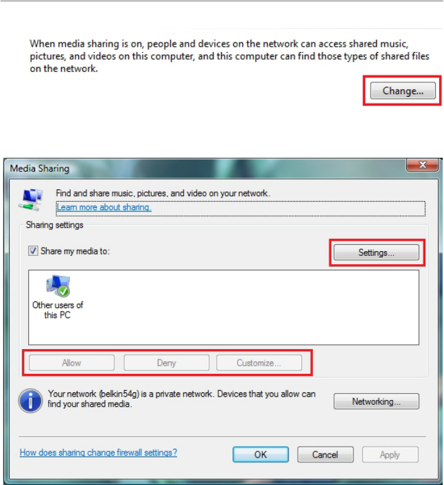 set parental controls, select media types to be shared, and so on.