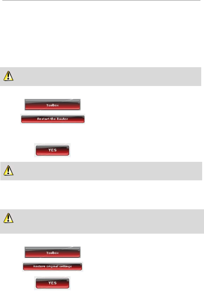 The Restart the Router function cuts off all of the Hercules Router’s functions (WiFi and ADSL connections,