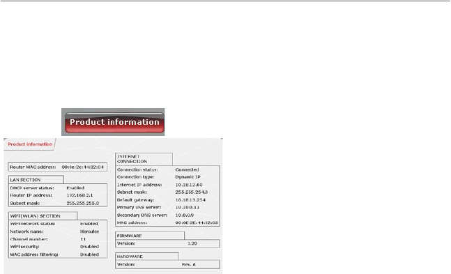 MAC address of your Hercules Router, status of